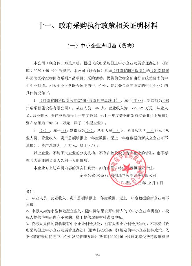 2、采購項(xiàng)目名稱:河南省胸科醫(yī)院醫(yī)療廢物回收系列產(chǎn)品項(xiàng)目