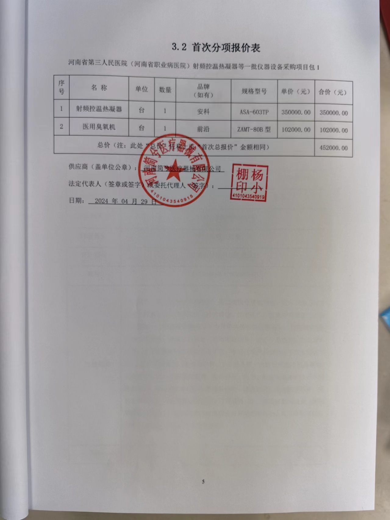 河南省第三人民醫(yī)院(河南省職業(yè)病醫(yī)院)射頻控溫?zé)崮鞯纫慌鷥x器設(shè)備采購項目包1 | 河南簡兮醫(yī)療器械有限公司 | 河南省鄭州市管城回族區(qū)鼎瑞街005號1號倉庫3層338室 | 449000 | 金額 | 元 | ||||