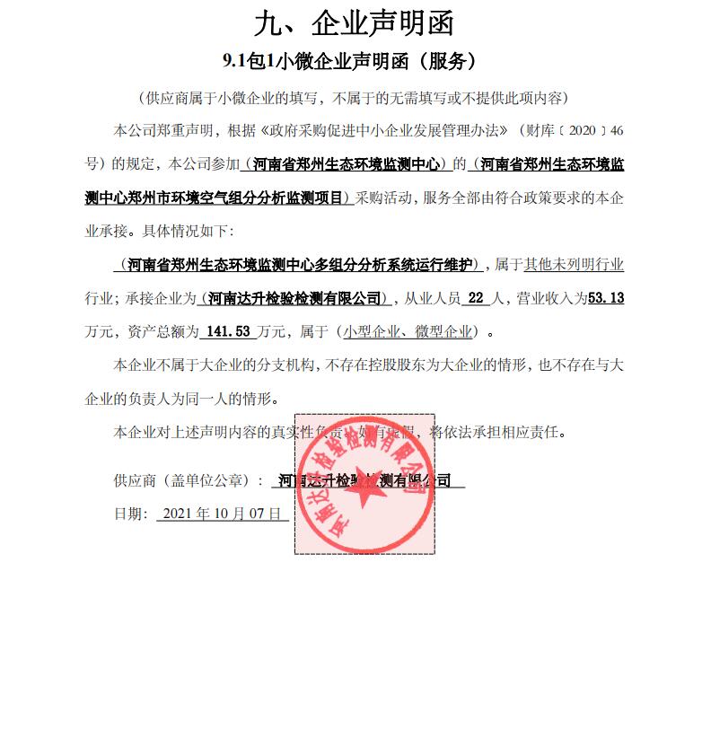 豫政采(2)20211585-1 | 河南省鄭州生態(tài)環(huán)境監(jiān)測(cè)中心鄭州市環(huán)境空氣組分分析監(jiān)測(cè)項(xiàng)目包1 | 河南達(dá)升檢驗(yàn)檢測(cè)有限公司 | 鄭州市金水區(qū)青年路145號(hào)6號(hào)樓9層904號(hào) | 2379000 | 金額 | 元 | |||||