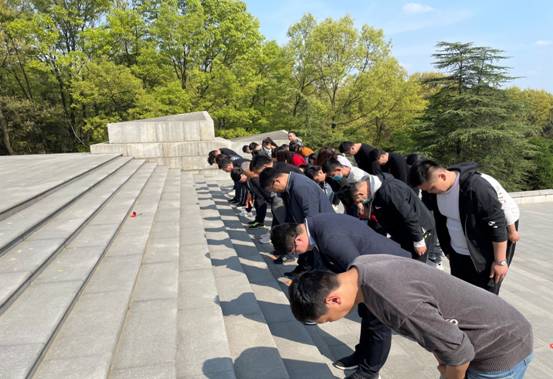 站在革命英雄紀(jì)念碑前,全體人員整齊列隊,莊嚴(yán)肅穆,向革命烈士鞠躬默哀。