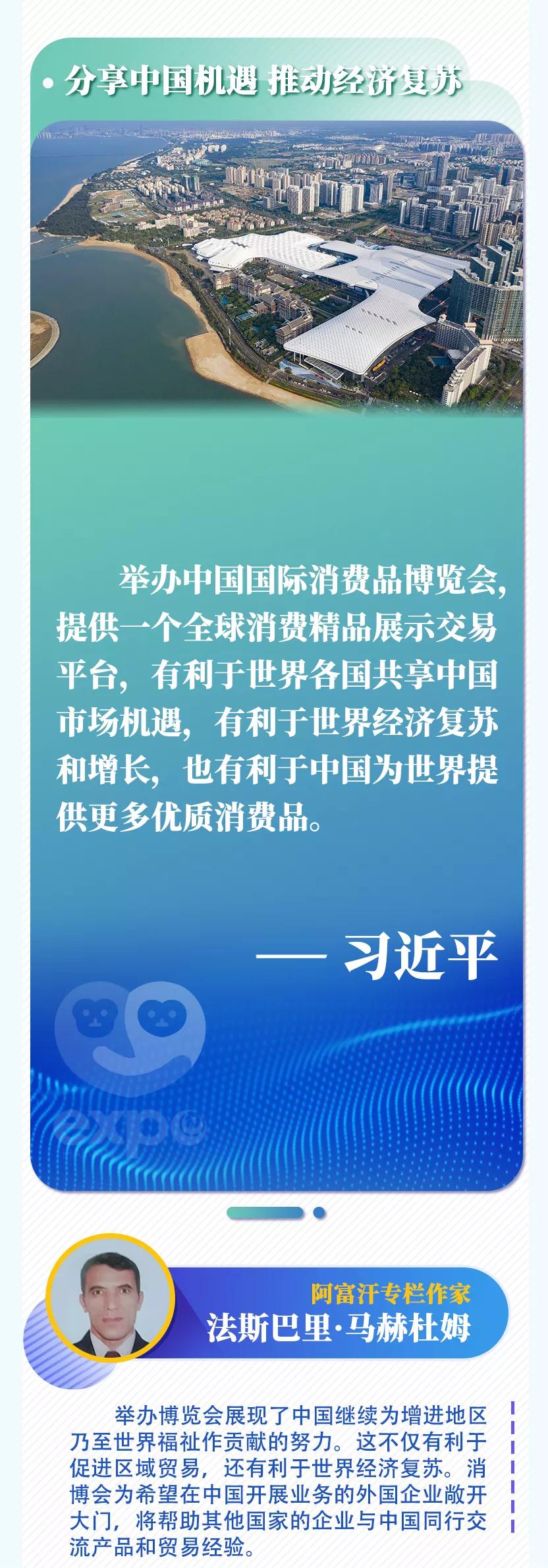 新華社北京5月7日電 首屆中國國際消費品博覽會6日在海南省??谑虚_幕,國家主席習近平致賀信。多國人士表示,舉辦國際消費品博覽會不僅是中國同各國共享發(fā)展機遇的重大舉措,還將對各國加強合作、實現(xiàn)互利共贏產生重要影響