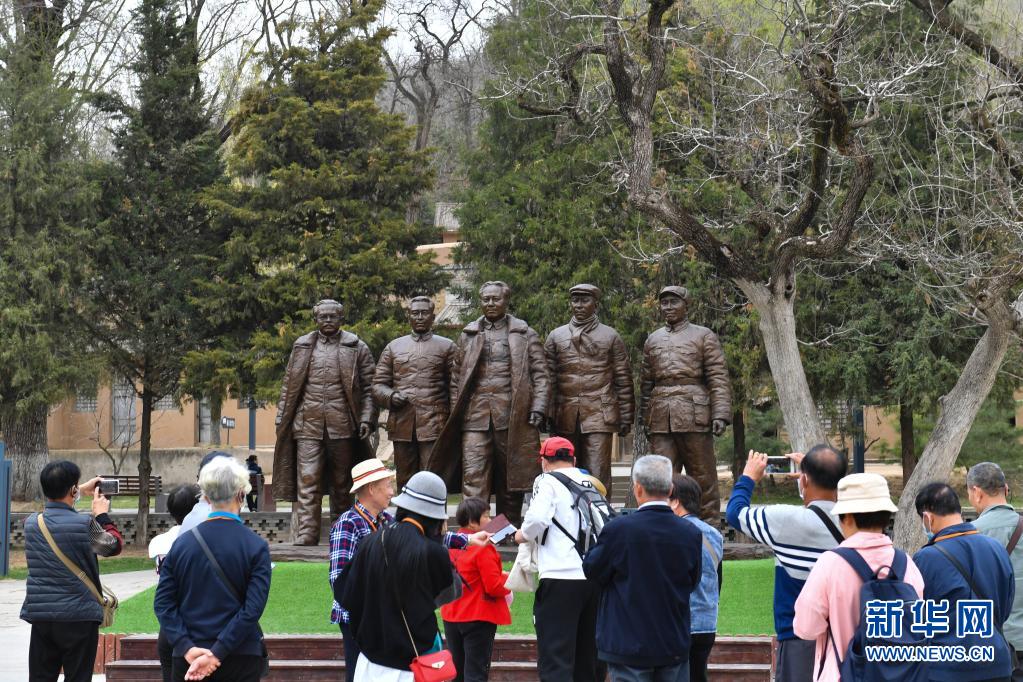 2021年3月29日,參觀者在延安市張思德廣場(chǎng)進(jìn)行現(xiàn)場(chǎng)教學(xué)活動(dòng)。新華社記者 張博文 攝
