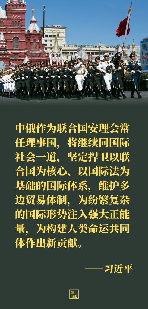 鐵甲洪流呼嘯,勝利吶喊震天,參加閱兵的中國(guó)軍人伴隨著《喀秋莎》的旋律昂首前行……激動(dòng)人心的瞬間,彰顯中俄攜手捍衛(wèi)歷史正義、維護(hù)世界和平的篤行與擔(dān)當(dāng)。