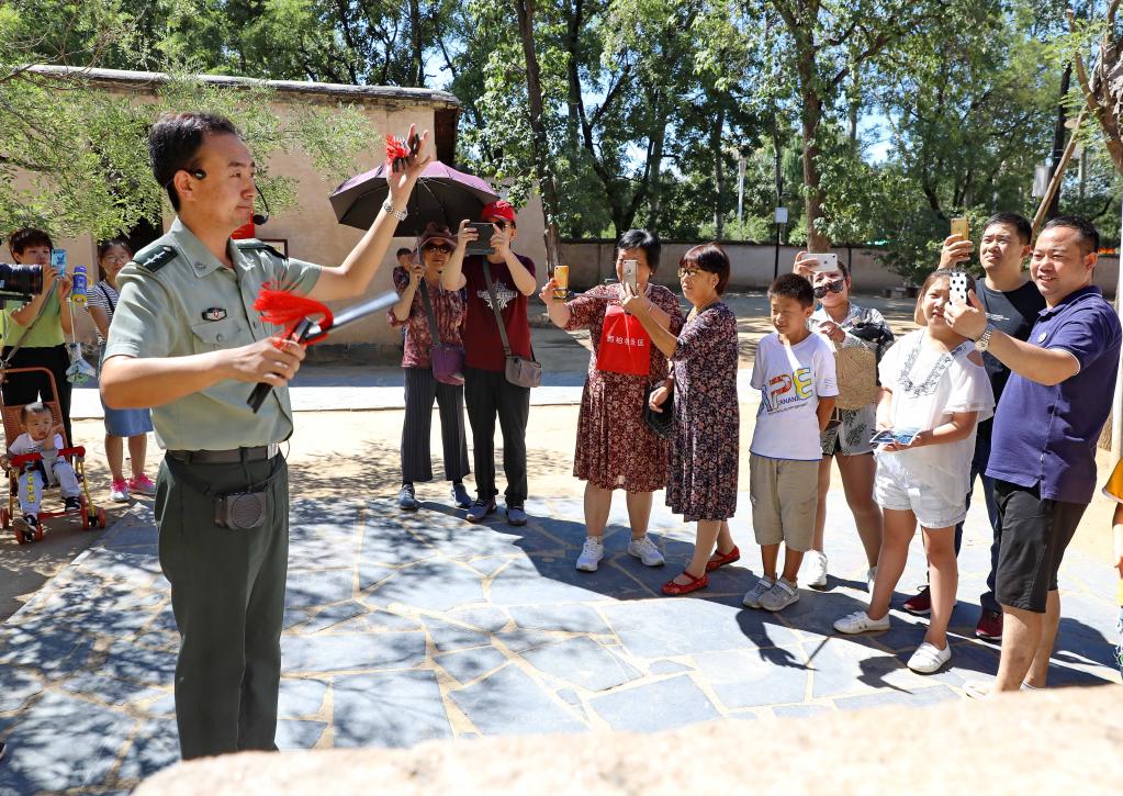 在西柏坡舊址,講解員韓向飛為游客進(jìn)行講解(2019年8月30日攝)。新華社記者楊世堯攝