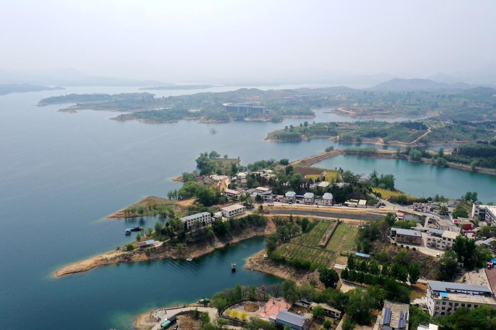 這是4月26日拍攝的崗南水庫(無人機(jī)照片)。新華社記者朱旭東攝