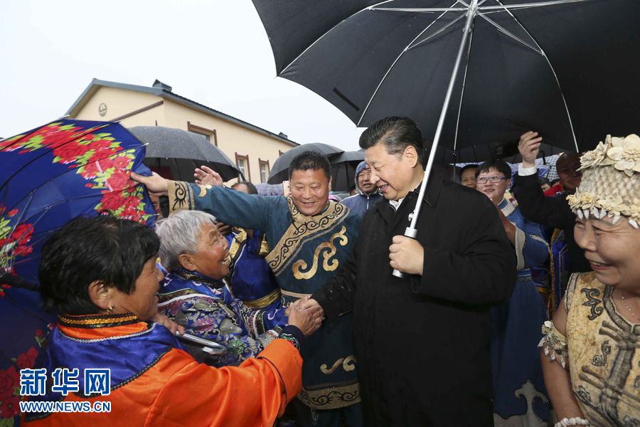 這是2016年5月24日下午,習(xí)近平在佳木斯市同江市八岔赫哲族鄉(xiāng)八岔村冒雨與村民們交談。新華社記者 蘭紅光 攝