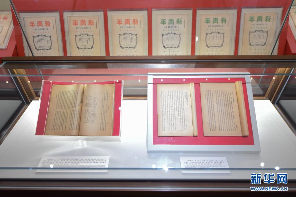 這是6月26日在北大紅樓拍攝的刊登李大釗《布爾什維主義的勝利》《我的馬克思主義觀》的《新青年》5卷5號(右)、6卷5號(左)原件。新華社記者 謝晗 攝