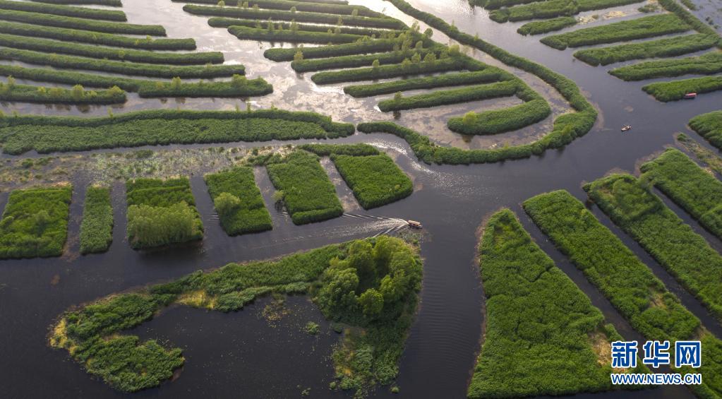 這是5月25日在雄安新區(qū)拍攝的白洋淀美景(無人機照片)。新華社記者 才揚 攝