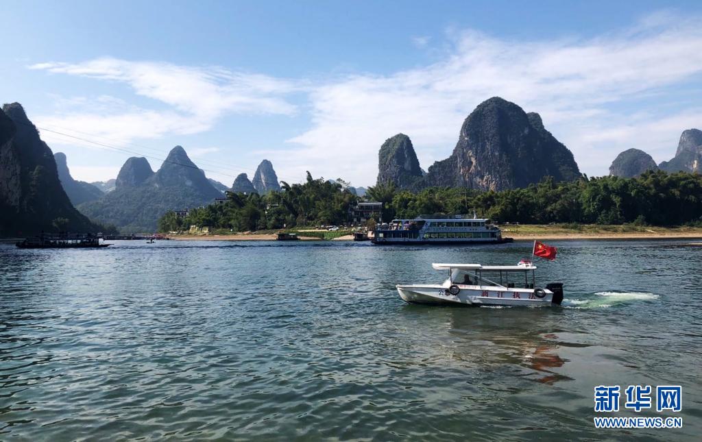 執(zhí)法船在漓江上巡查(2019年11月14日攝)。新華社記者 盧羨婷 攝