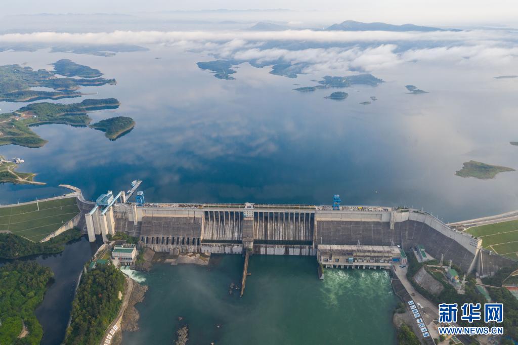 這是湖北省丹江口市丹江口水庫(kù)景色(無(wú)人機(jī)照片,5月20日攝)。新華社記者 才揚(yáng) 攝