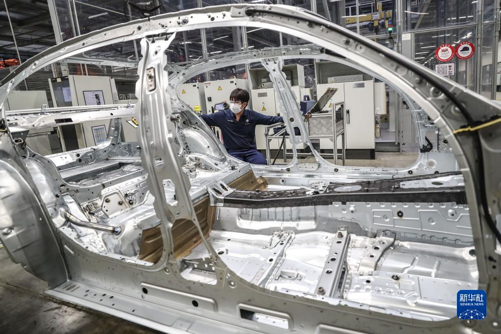 2020年2月17日,工人在華晨寶馬汽車(chē)有限公司鐵西工廠生產(chǎn)線上工作。新華社記者 潘昱龍 攝