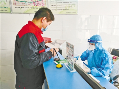 “以往接種疫苗之后,有沒有嚴(yán)重的不良反應(yīng)?……”記者在現(xiàn)場看到,作為河南新冠肺炎疫苗首針接種對象,來自中原物流港的冷鏈物流工作人員趙志強(qiáng)正在接受健康問詢。測量體溫、填表登記確保身體健康無不良反應(yīng)狀態(tài)之后,配發(fā)接種新冠疫苗憑證,進(jìn)入接種區(qū)進(jìn)行接種。