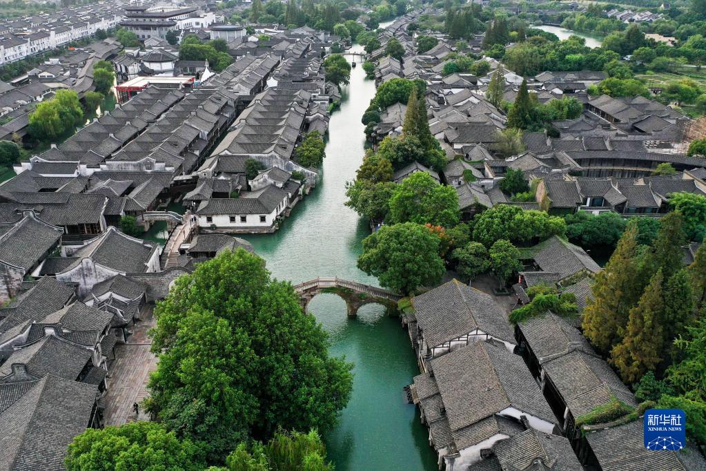 9月25日拍攝的烏鎮(zhèn)西柵景區(qū)(無人機(jī)照片)。新華社記者 黃宗治 攝