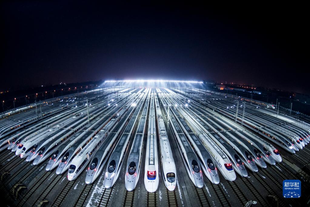 動車組停靠在武漢動車段的存車線上,準備進行檢修和保溫作業(yè)(2018年2月1日攝)。新華社記者 肖藝九 攝