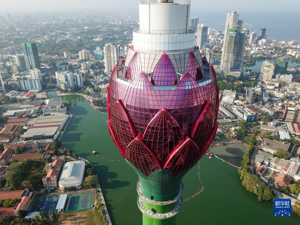 這是無人機航拍的斯里蘭卡科倫坡蓮花電視塔(2019年4月10日攝)??苽惼律徎娨曀侵兴箖蓢凇耙粠б宦贰苯ㄔO中的重要合作項目。新華社記者 郭磊 攝
