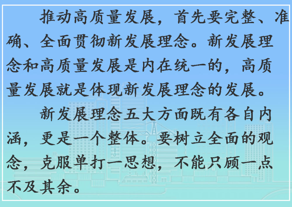 黨的十九屆六中全會(huì)審議通過的《中共中央關(guān)于黨的百年奮斗重大成就和歷史經(jīng)驗(yàn)的決議》指出:“黨中央強(qiáng)調(diào),貫徹新發(fā)展理念是關(guān)系我國(guó)發(fā)展全局的一場(chǎng)深刻變革,不能簡(jiǎn)單以生產(chǎn)總值增長(zhǎng)率論英雄,必須實(shí)現(xiàn)創(chuàng)新成為第一動(dòng)力、協(xié)調(diào)成為內(nèi)生特點(diǎn)、綠色成為普遍形態(tài)、開放成為必由之路、共享成為根本目的的高質(zhì)量發(fā)展,推動(dòng)經(jīng)濟(jì)發(fā)展質(zhì)量變革、效率變革、動(dòng)力變革?!?/span>