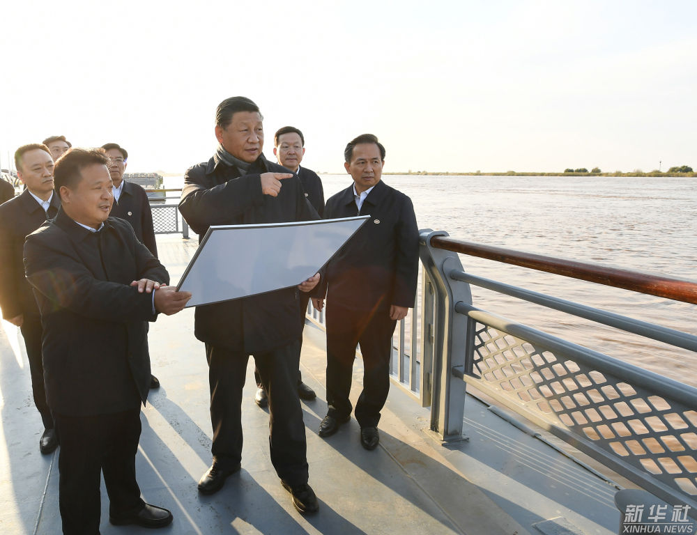 ↑2021年10月22日下午,習(xí)近平在山東省濟(jì)南市主持召開深入推動(dòng)黃河流域生態(tài)保護(hù)和高質(zhì)量發(fā)展座談會(huì)并發(fā)表重要講話。這是座談會(huì)前,習(xí)近平20日下午在東營(yíng)市黃河入海口考察。