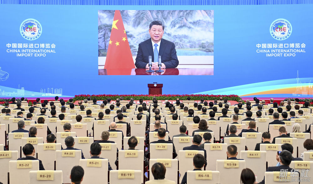 ↑2021年11月4日晚,習(xí)近平以視頻方式出席第四屆中國(guó)國(guó)際進(jìn)口博覽會(huì)開幕式并發(fā)表題為《讓開放的春風(fēng)溫暖世界》的主旨演講。