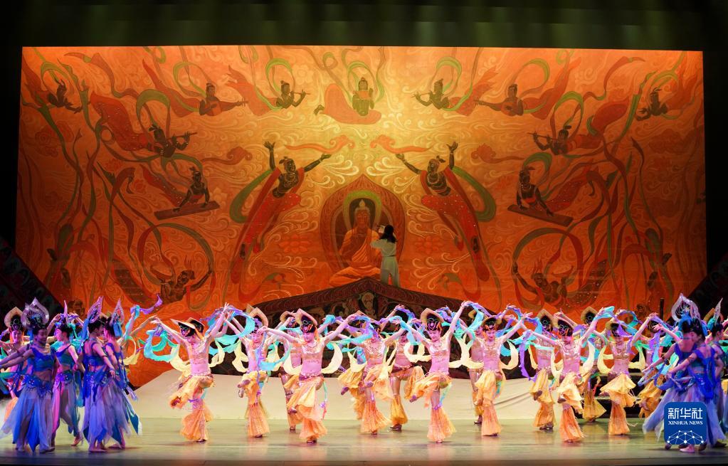 2020年1月9日,在美國(guó)紐約林肯劇院,演員在媒體預(yù)演上表演《大夢(mèng)敦煌》片段。新華社記者 王迎 攝
