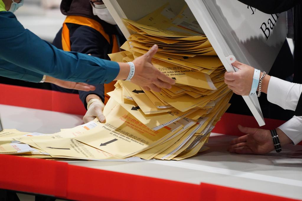 12月19日,香港順利舉行完善選舉制度后首次立法會選舉投票,工作人員點票現(xiàn)場。新華社記者 呂小煒 攝