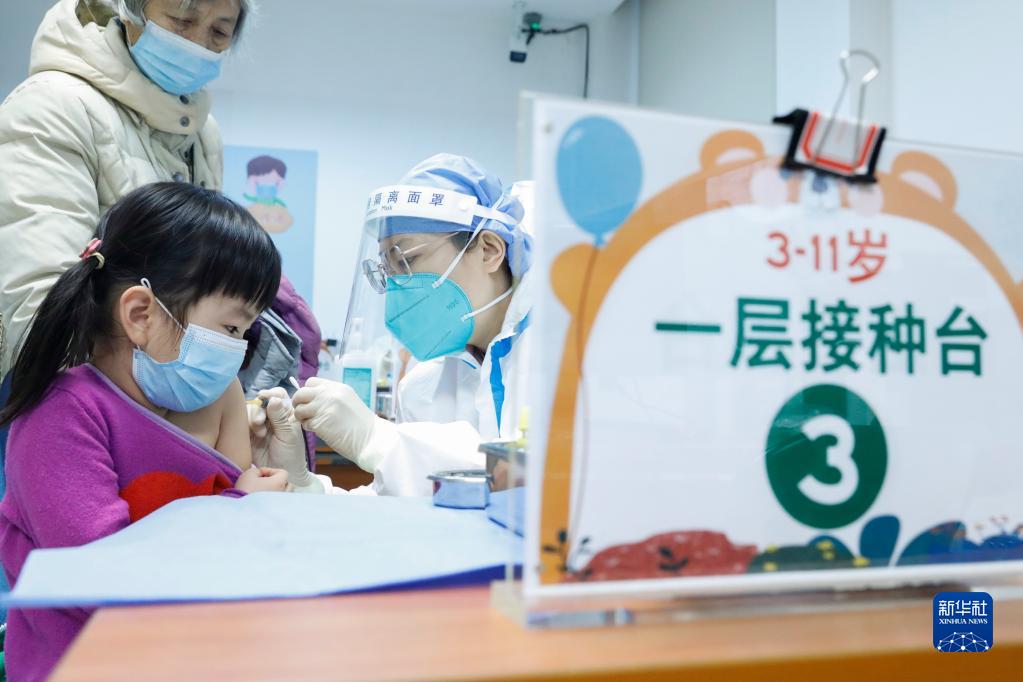 家長帶著孩子在北京新街口街道新冠疫苗接種點(diǎn)接種疫苗(12月9日攝)。新華社記者 張玉薇 攝