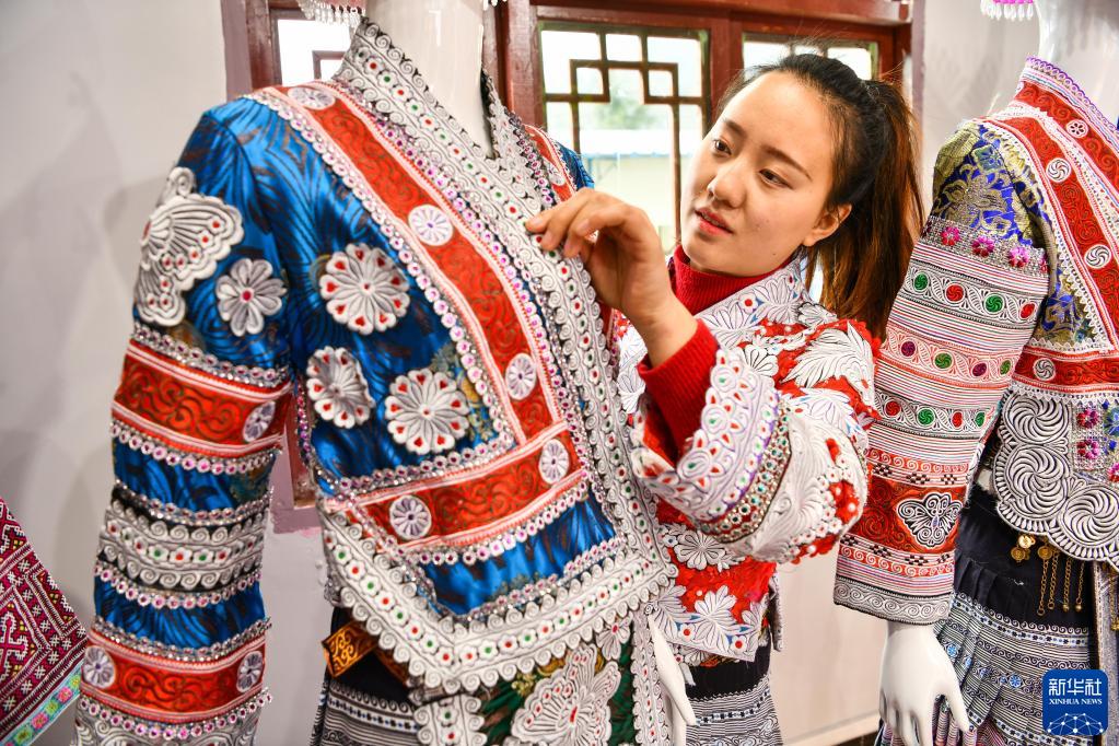 2021年春節(jié)前夕,習(xí)近平總書記來到貴州畢節(jié)化屋村,扶貧車間里精美的苗族傳統(tǒng)服飾吸引了總書記的目光。