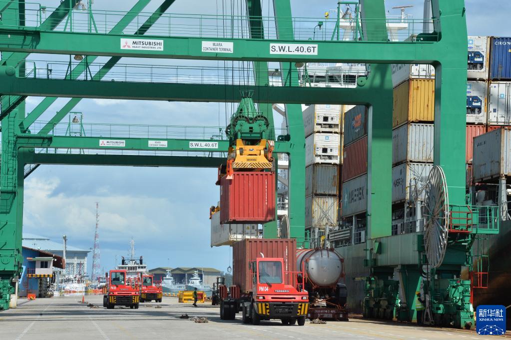 這是2022年1月1日拍攝的正在進行集裝箱裝卸作業(yè)的文萊摩拉港碼頭。文萊摩拉港由中國和文萊合資企業(yè)——摩拉港有限公司運營。新華社發(fā)(杰弗里·黃攝)