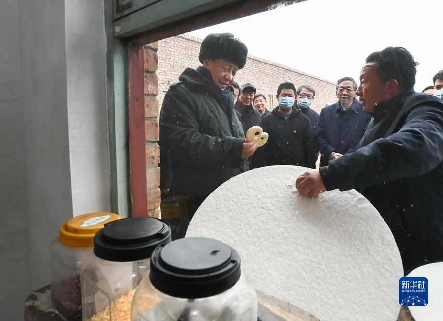 26日下午,習(xí)近平冒雪來到臨汾市考察調(diào)研。去年10月,山西出現(xiàn)有氣象記錄以來最強(qiáng)秋汛,全省11市受災(zāi)?;糁菔袔熐f鄉(xiāng)馮南垣村是臨汾市農(nóng)房受損較為嚴(yán)重的村莊之一,習(xí)近平專程來到這里看望慰問受災(zāi)群眾。他聽取了山西災(zāi)后恢復(fù)重建、秋冬補(bǔ)種、確保群眾安全溫暖過冬、加強(qiáng)防災(zāi)減災(zāi)和應(yīng)急體系建設(shè)等情況匯報(bào),隨后來到受災(zāi)村民師紅兵家中看望。
