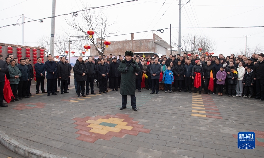 1月26日至27日,中共中央總書記、國(guó)家主席、中央軍委主席習(xí)近平來到山西,看望慰問基層干部群眾。這是26日下午,習(xí)近平在臨汾市汾西縣僧念鎮(zhèn)段村文化廣場(chǎng),給鄉(xiāng)親們拜年,向全國(guó)各族人民、向港澳臺(tái)同胞和海外僑胞致以美好的新春祝福。新華社記者 謝環(huán)馳 攝