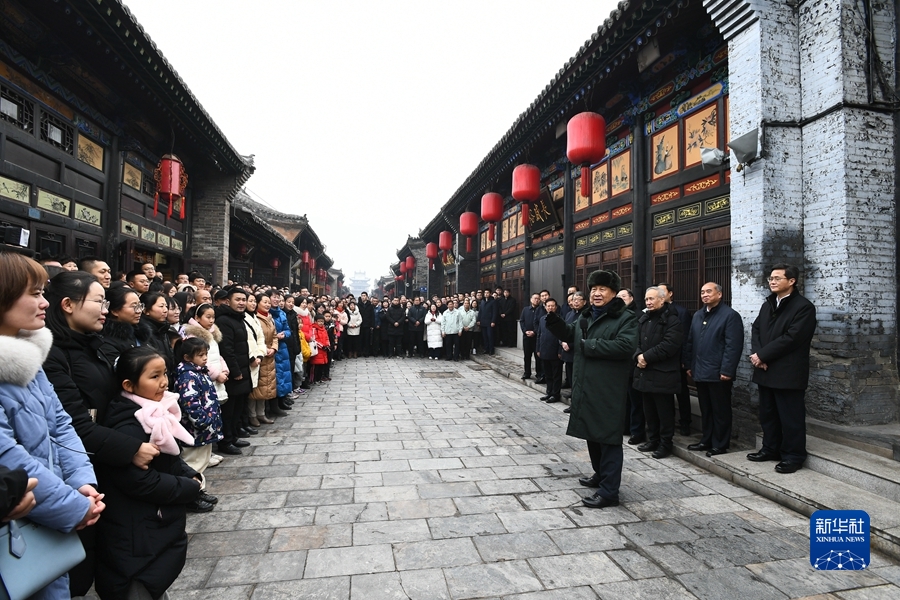 1月26日至27日,中共中央總書記、國(guó)家主席、中央軍委主席習(xí)近平來到山西,看望慰問基層干部群眾。這是27日上午,習(xí)近平在平遙古城同現(xiàn)場(chǎng)群眾親切交流。新華社記者 謝環(huán)馳 攝