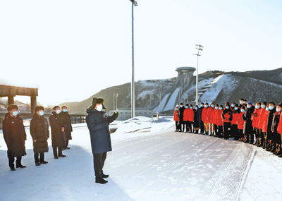 隆冬時(shí)節(jié),華北大地碧空如洗,山區(qū)銀裝素裹。1月18日至19日,習(xí)近平分別在中共中央政治局委員、北京市委書記蔡奇和市長陳吉寧,河北省委書記王東峰陪同下,冒著嚴(yán)寒先后來到海淀、延慶、張家口等地,深入體育場(chǎng)館、訓(xùn)練基地、交通樞紐等,實(shí)地了解北京2022年冬奧會(huì)、冬殘奧會(huì)籌辦情況。
