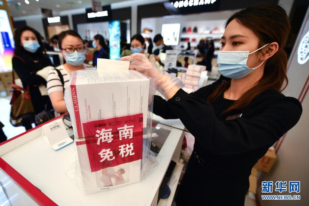 1月7日,??谌赵聫V場免稅店的工作人員在打包免稅品。新華社記者 郭程 攝