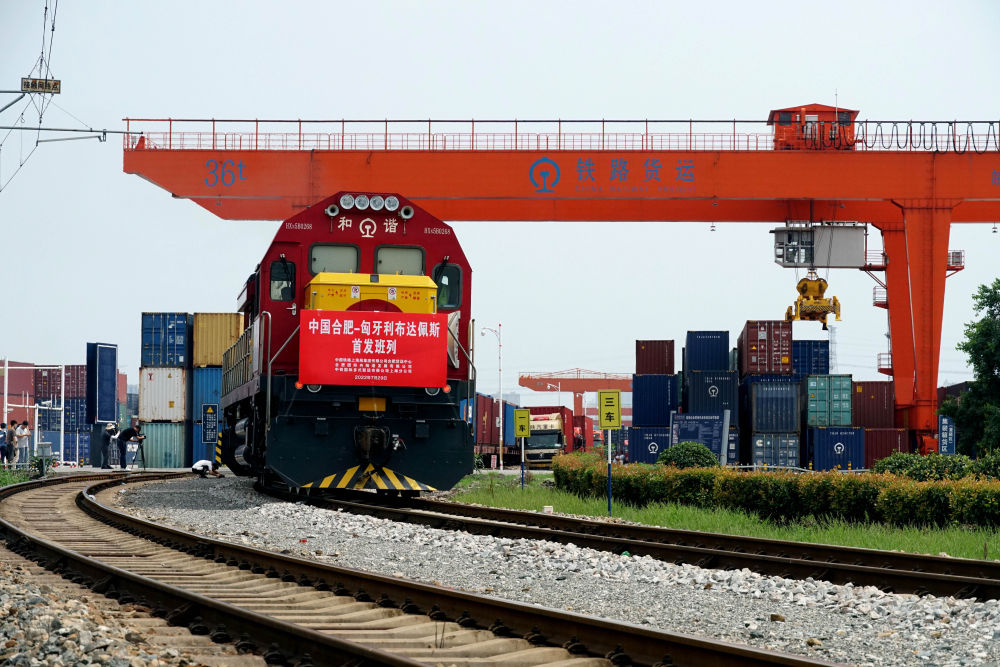 ??2022年7月29日,合肥至匈牙利布達(dá)佩斯的中歐班列從合肥北站物流基地駛出,標(biāo)志著合肥中歐班列通往匈牙利布達(dá)佩斯的線路正式開(kāi)通。新華社發(fā)(席靜玉攝)