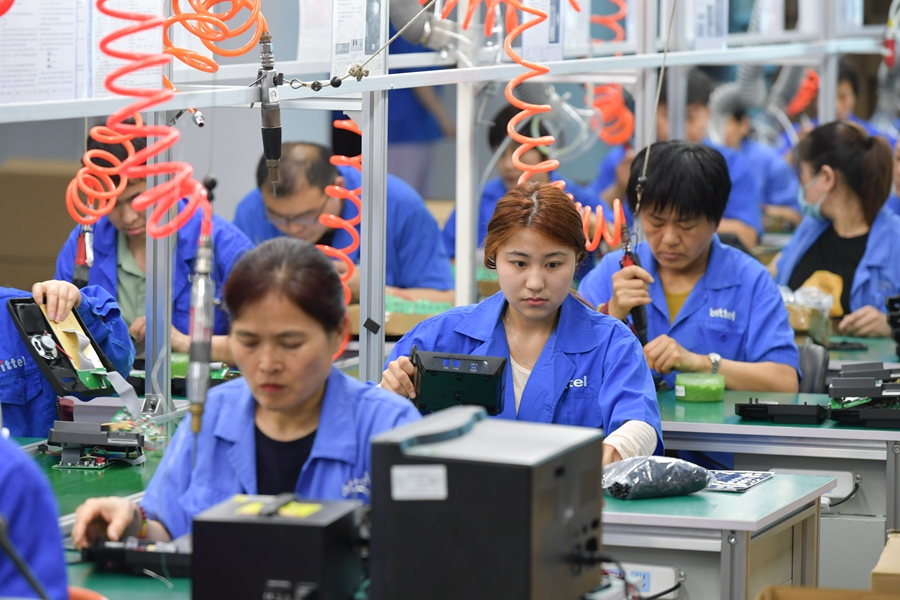 ??2024年5月22日,在位于日照市東港區(qū)新舊動(dòng)能轉(zhuǎn)換示范基地的山東比特智能科技股份有限公司新廠區(qū),工人在車間內(nèi)工作。新華社記者 孟濤 攝