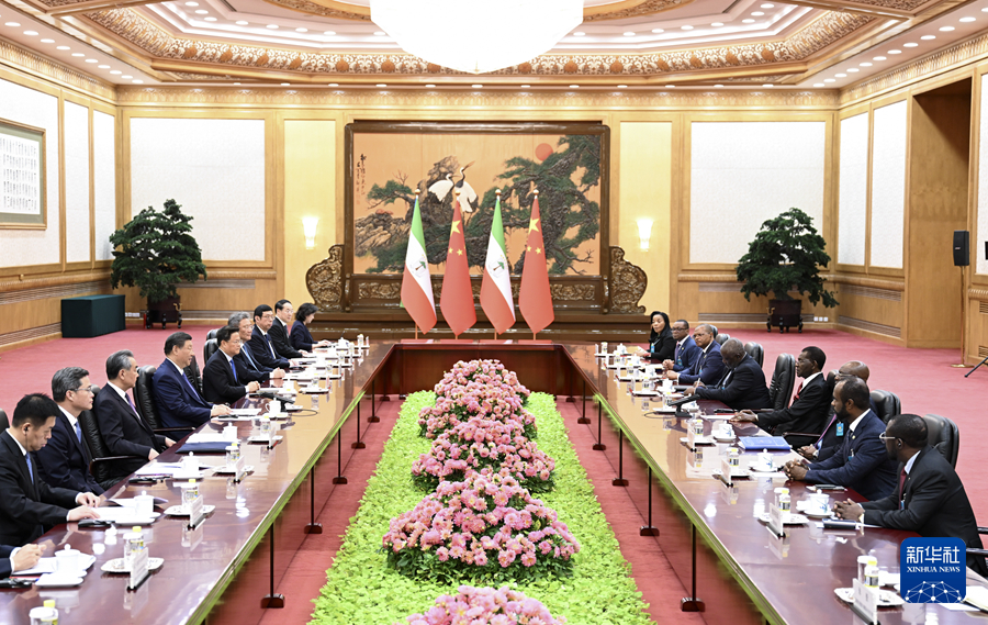 ??習近平強調(diào),當今世界變亂交織,百年變局加速演進,人類社會面臨前所未有的挑戰(zhàn),發(fā)展中國家比以往任何時候都更需要加強團結(jié)合作。中方愿同赤道幾內(nèi)亞等廣大發(fā)展中國家一道,弘揚和平共處五項原則精神,在國際事務(wù)中加強協(xié)調(diào)配合,維護發(fā)展中國家共同利益和國際公平正義,推動構(gòu)建人類命運共同體。發(fā)展同非洲國家團結(jié)合作是中國外交政策的重要基石。中方愿同非方開好新一屆中非合作論壇峰會,進一步弘揚傳統(tǒng)友好,深化團結(jié)協(xié)作,共商未來發(fā)展合作大計,開啟構(gòu)建中非命運共同體的新篇章。