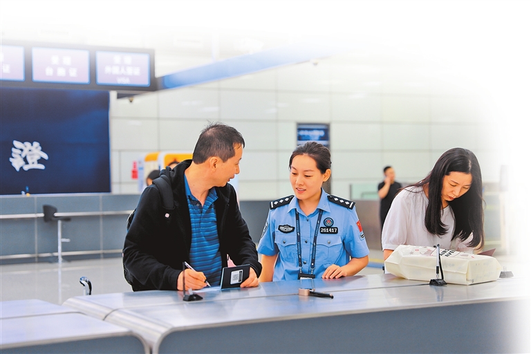 鄭州出入境邊防檢查站民警在引導(dǎo)旅客填寫外國(guó)人入境卡。 謝文長(zhǎng) 攝