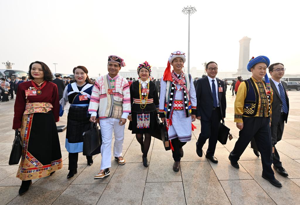 ??2023年3月5日,第十四屆全國人民代表大會第一次會議在北京人民大會堂開幕。這是全國人大代表走向會場。新華社記者 陳益宸 攝