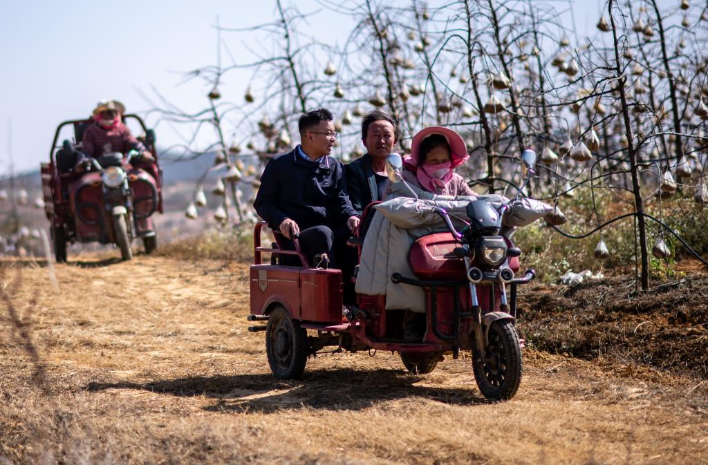 ??全國人大代表袁海波(右三)在云南省曲靖市馬龍區(qū)一種植基地了解務工人員就業(yè)需求(2023年2月11日攝)。新華社記者 江文耀 攝