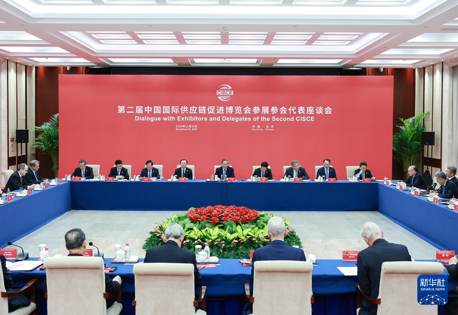 ??11月25日,國務(wù)院總理李強在北京同第二屆中國國際供應(yīng)鏈促進博覽會參展參會企業(yè)代表座談。新華社記者 王曄 攝