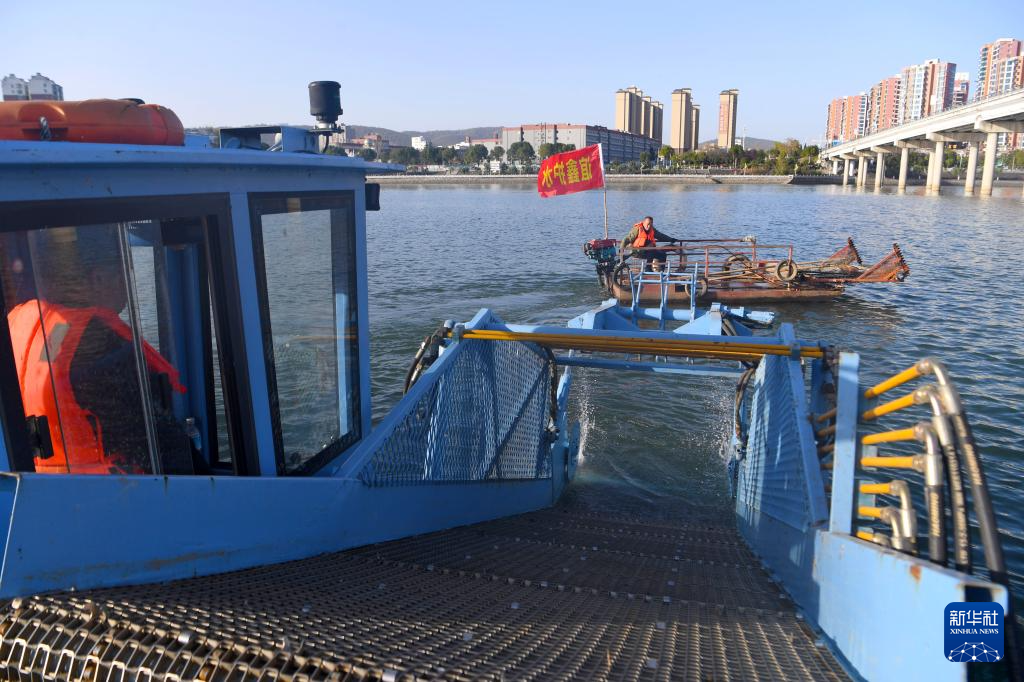 ??11月27日,淅川縣清漂隊(duì)工作人員在丹江口水庫(kù)宋崗碼頭附近進(jìn)行清漂作業(yè)。